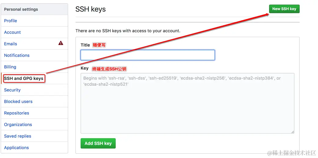 Github上的仓库交互,那么就要把这台电脑的SSH公钥添加到这个Github账户上 -