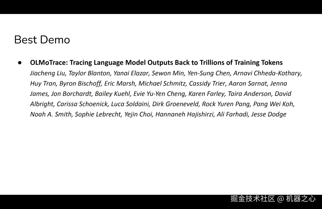 获奖论文:OLMoTrace: Tracing Language Model Outputs Back to Trillions of Training Tokens