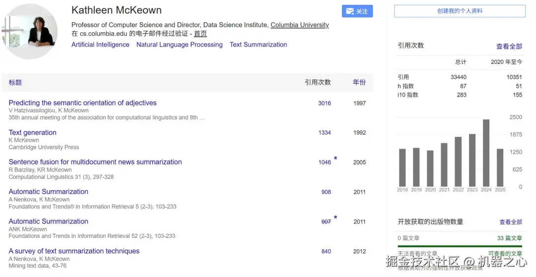 目前,McKeown 是哥伦比亚大学计算机科学 Henry and Gertrude Rothschild 教授。她也是哥伦比亚大学数据科学研究所的创始主任,并于 2012 年 7 月至 2017 年 6 月担任该研究所所长。