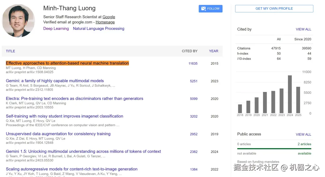 目前,该论文的被引量已经超过 1 万。论文一作 Minh-Thang Luong 博士毕业于斯坦福大学,师从斯坦福大学教授 Christopher Manning,现在是谷歌的研究科学家。