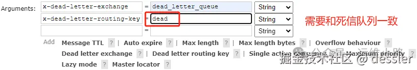 以上配置仅仅保证消息会被重新进入死信交换机,如果还要进入死信队列还需要添加路由key。