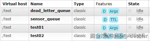 下图的test02队列就是绑定死信队列的配置(DLX)。