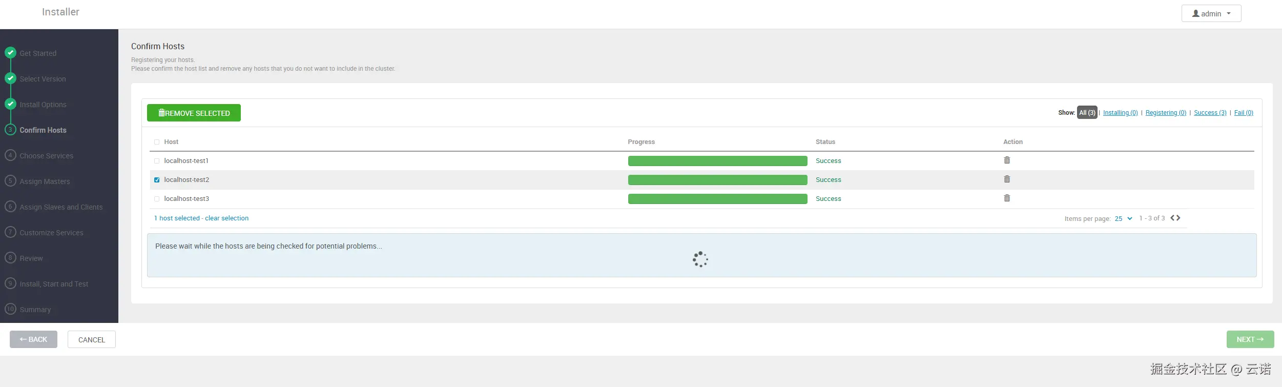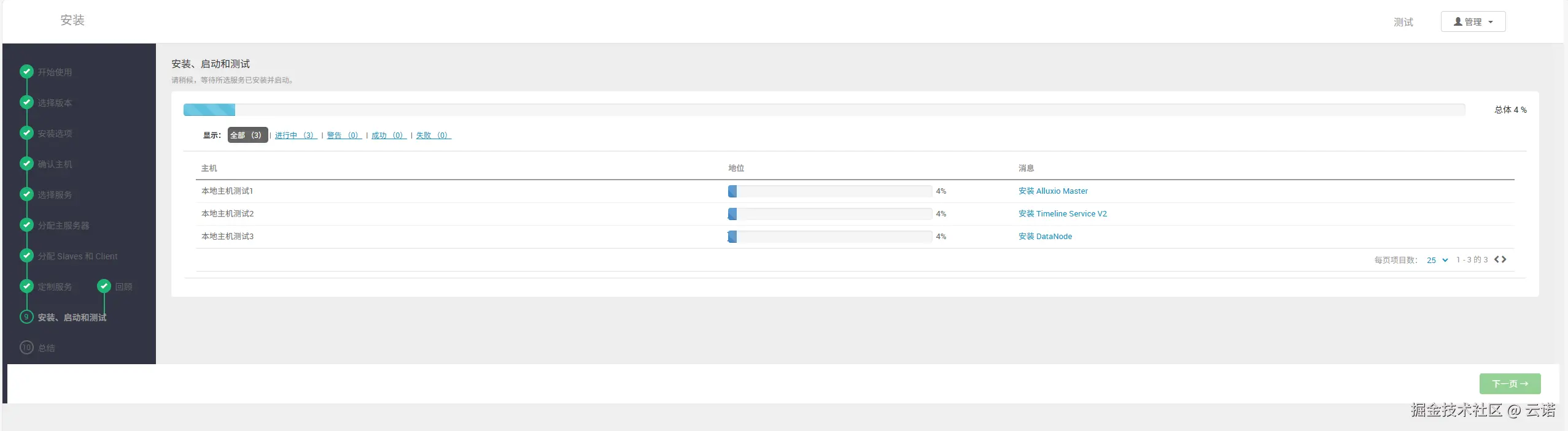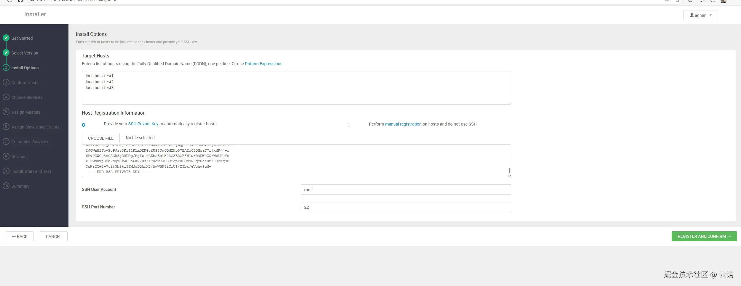 3. 设置安装选择,配置在哪些 agent 主机上进行安装,并配置 server 主机的密钥,位于 /etc/.ssh/id_rsa