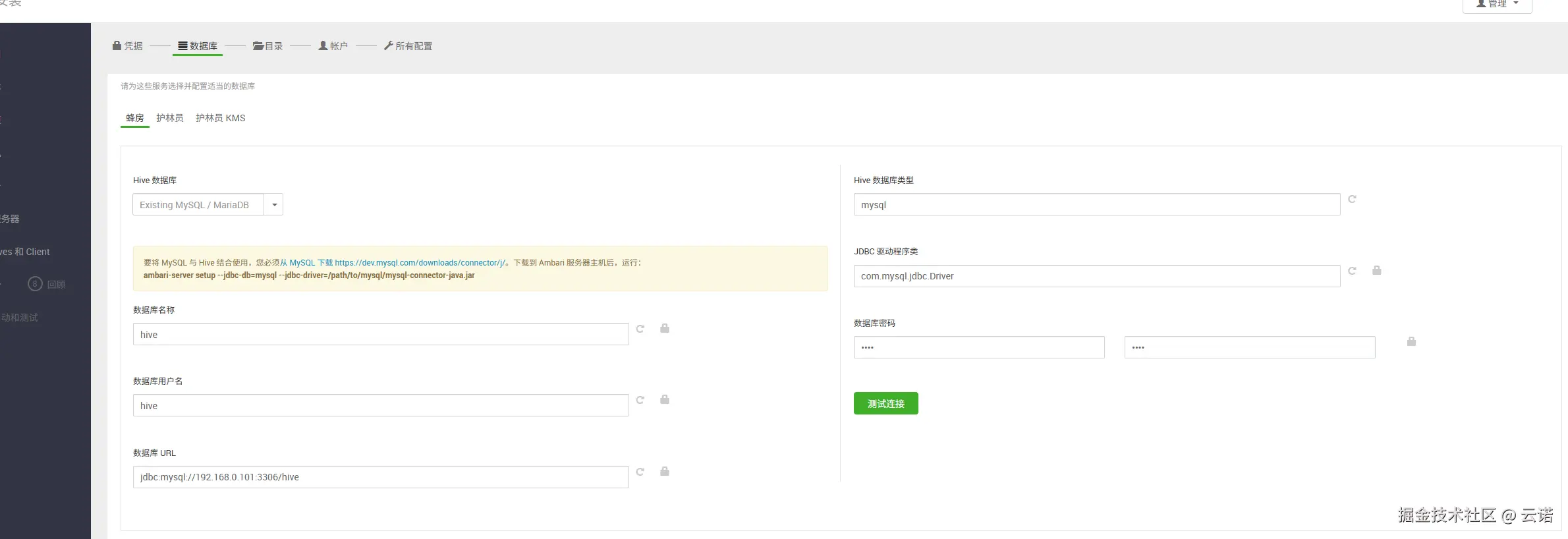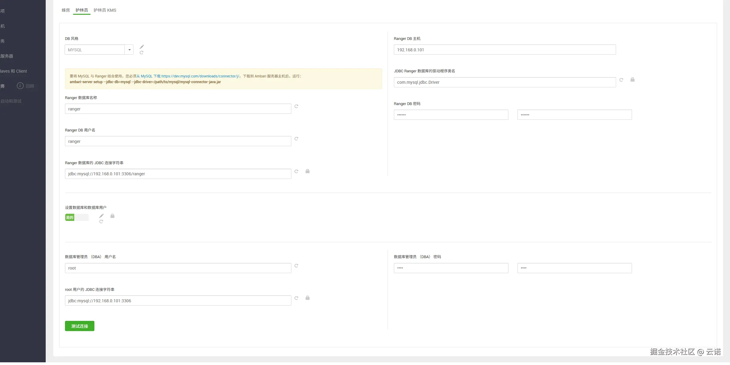 其他服务密码:admin Ranger 管理员密码: amb_ranger_admin123