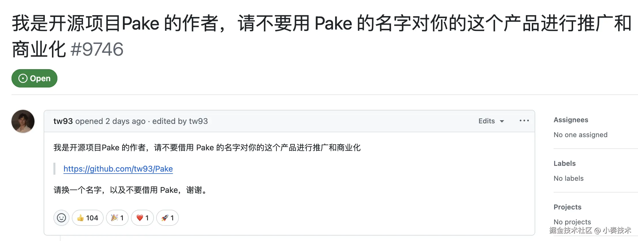 在v2ex中PakePlus的作者自爆被Pake作者要求自己项目改名字
