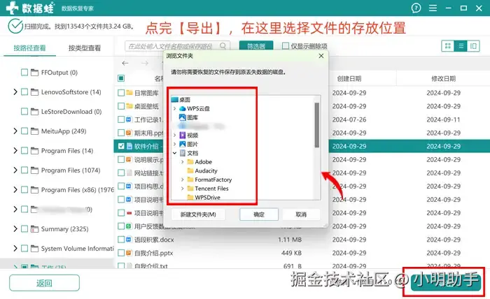 步骤2: 在扫描出来的文件中,我们可以发现软件已经基本把文件的信息都展示给用户看了,我们可以较为轻松地选出自己的目标文件。并点击“导出”进行文件恢复。