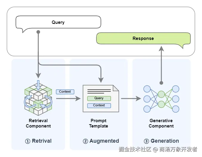 RAG 的工作流程可以归纳成以下三步: