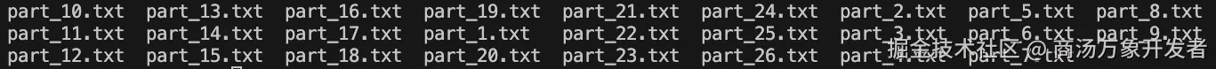👉file_name = f"./data_kb/part_{i+1}.txt":为每个文件生成一个唯一的文件名,例如 part_1.txt, part_2.txt 等。