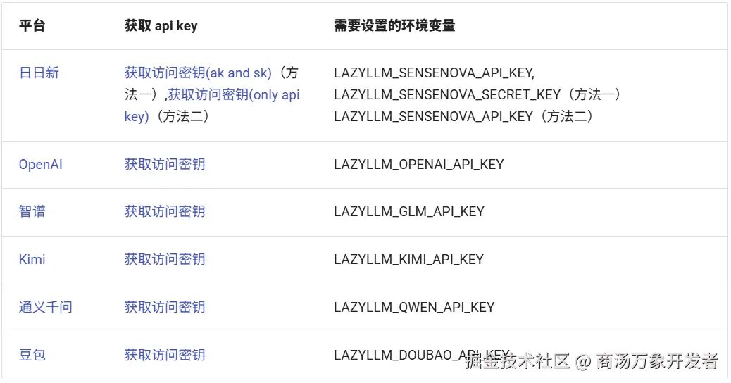 LazyLLM 目前支持以下平台(api key 链接见附件):