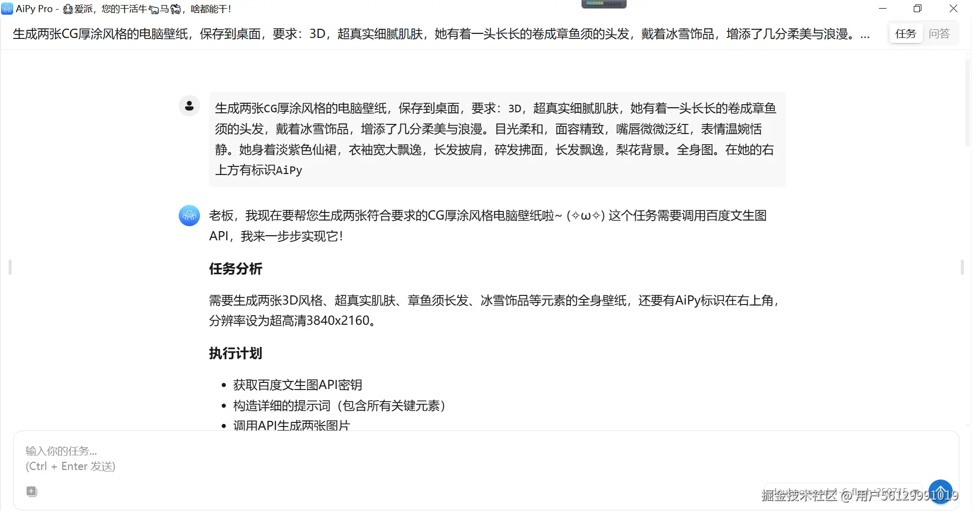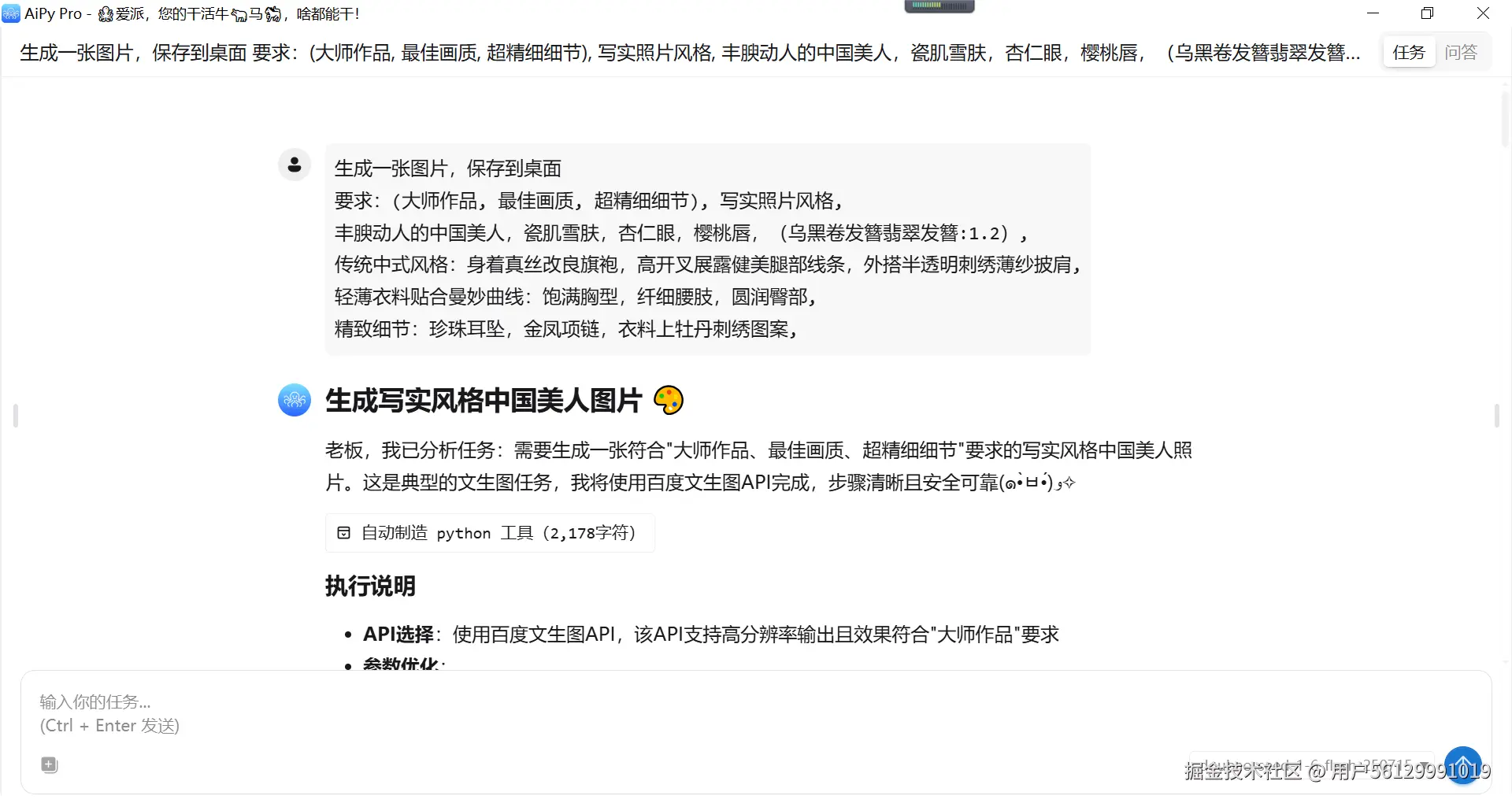 AiPy发送指令,自动调用文生图API进行生图