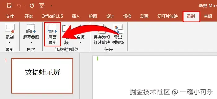 步骤1:打开要录制的PPT文件,点击上方菜单栏的 “录制” 选项,就能找到 “屏幕录制” 功能。