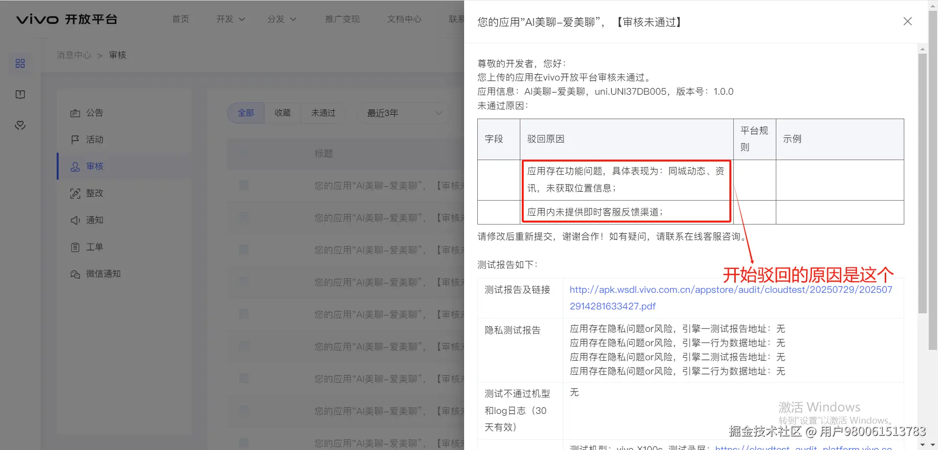 现在说说具体怎么被他们为难的事吧,他们是各种鸡蛋里挑骨头,指鹿为马,还气势凌人不容争辩。举例说说们其中的几次驳回,比如最近一次,说我“应用存在功能问题,具体表现为:同城动态、资讯,未获取位置信息”,但实事是我的app应用里都有获取位置信息,用这个原因驳回真是把我气笑了。