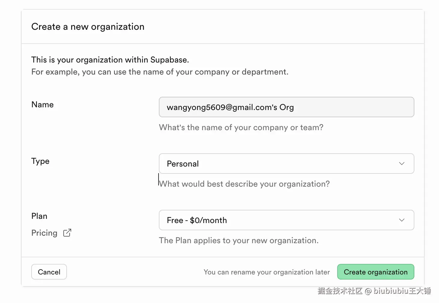 - 打开 Supabase 官网,注册一个账号