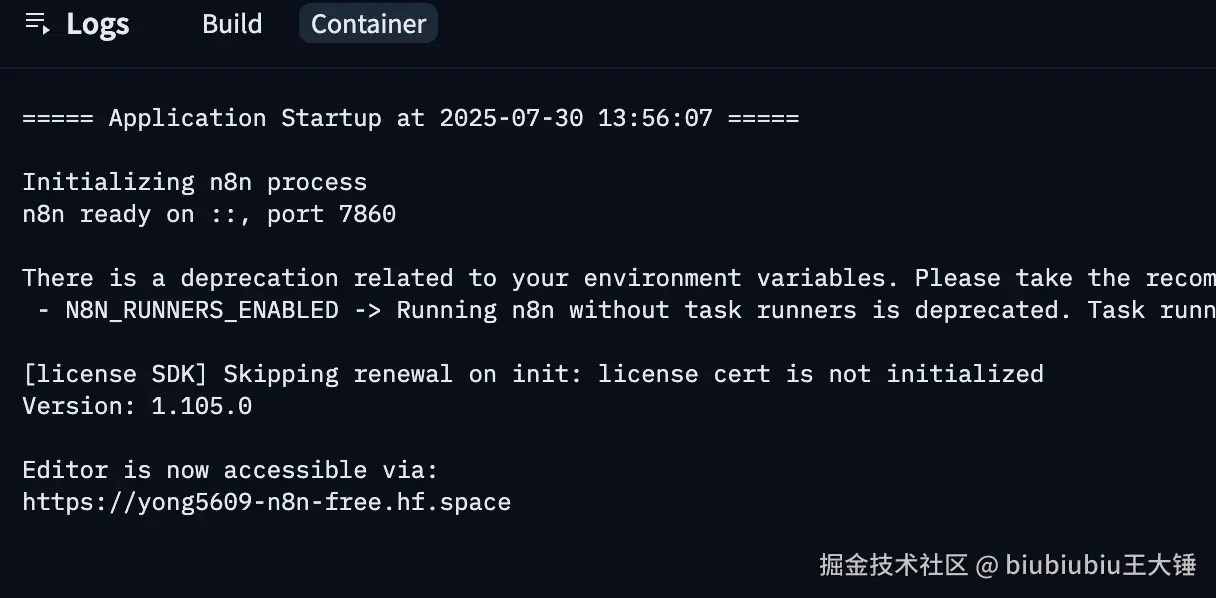 复制并打开日志中这个链接(例如:yong5609-n8n-free.hf.space)