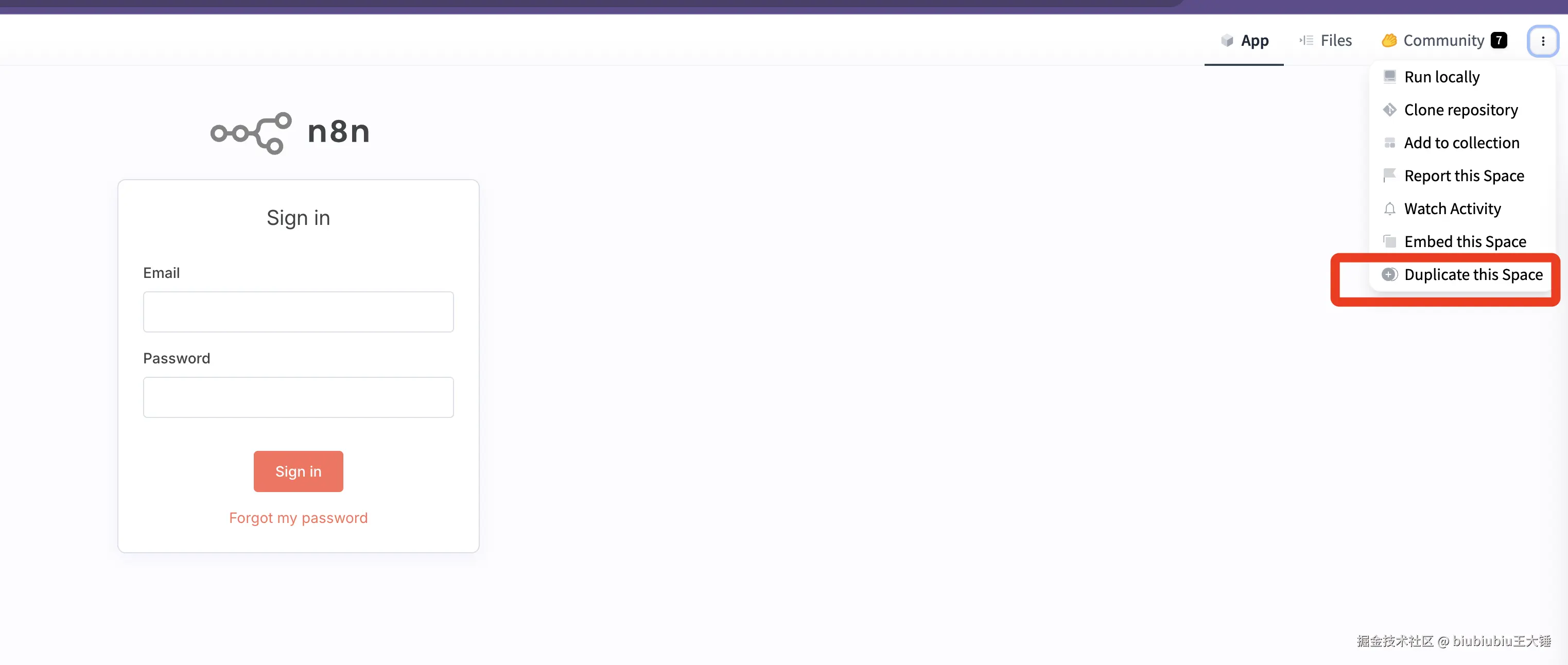 点击右上角三个点展开,点击 【Duplicate this Space】