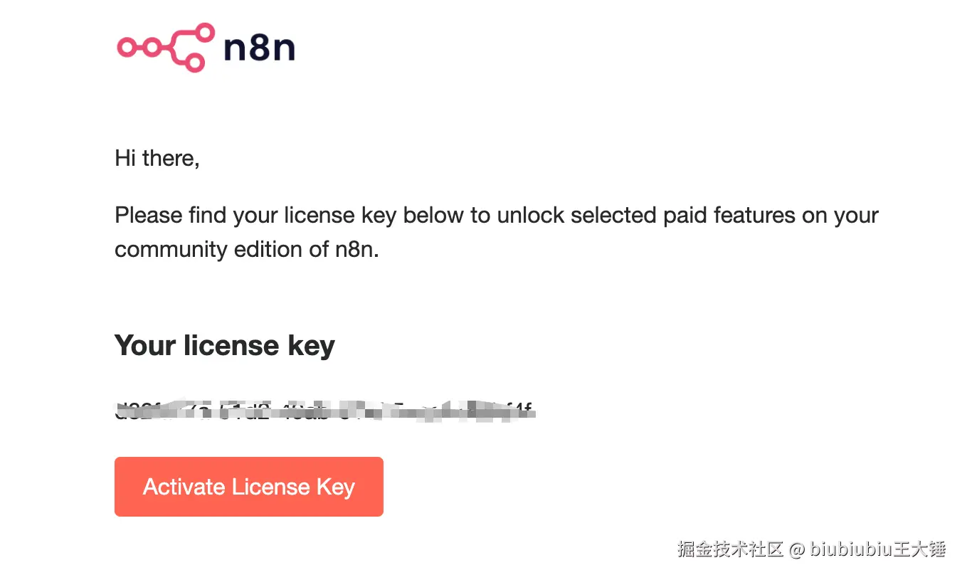 注册完成后登录,n8n 会向你的邮箱发送一个免费的许可证。请务必不要跳过这一步! 这将影响你使用 n8n 的部分高级功能。
