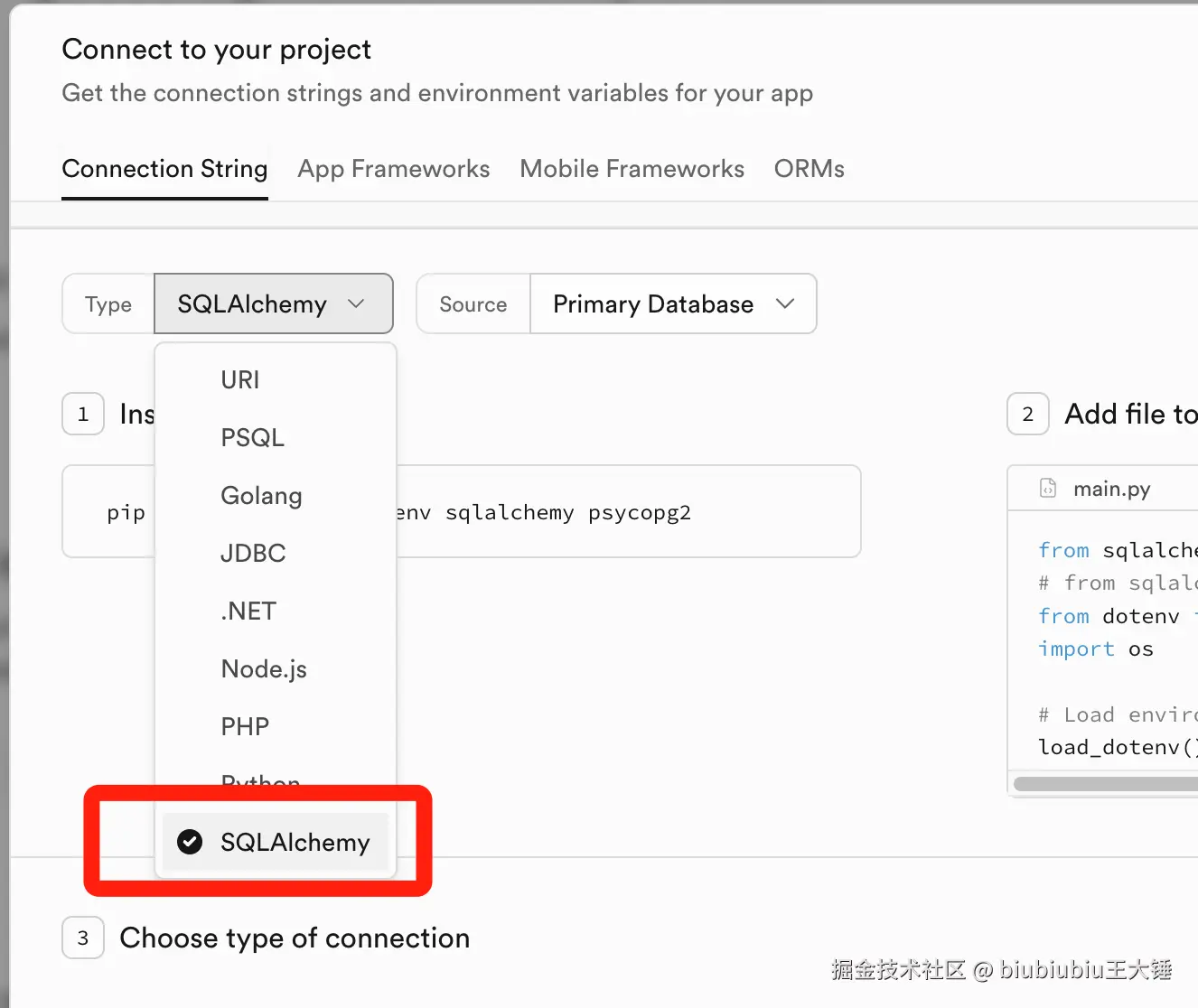 在【Type】这里选择【SQLALchemy】