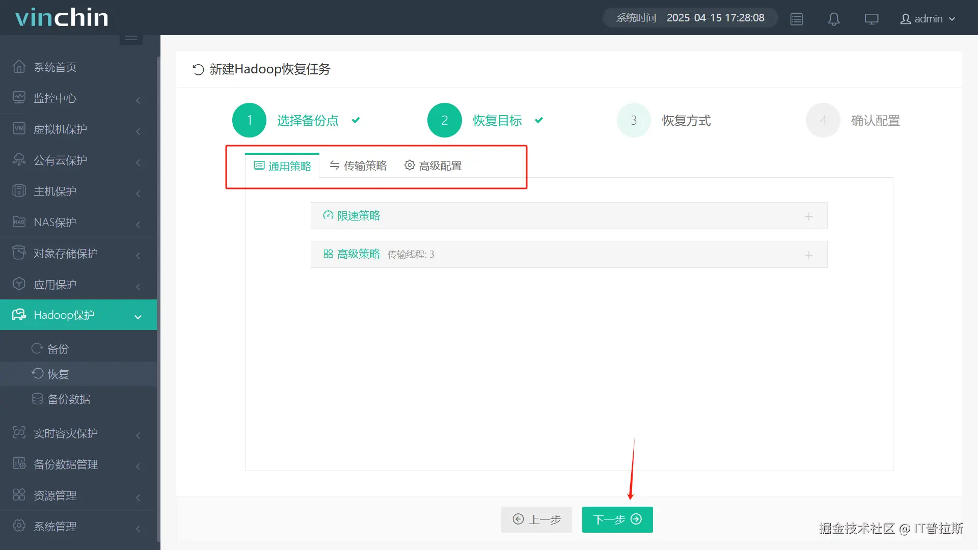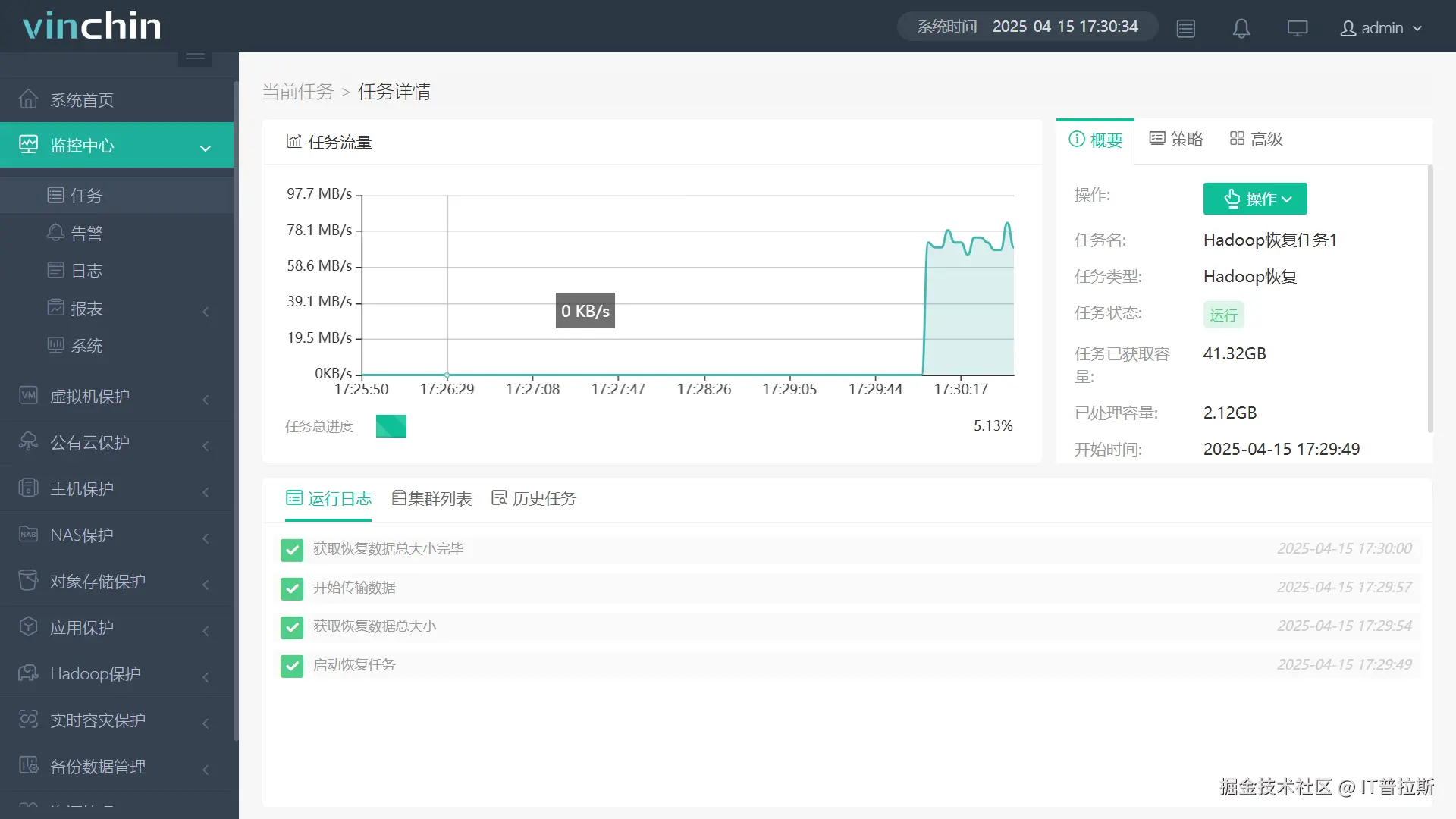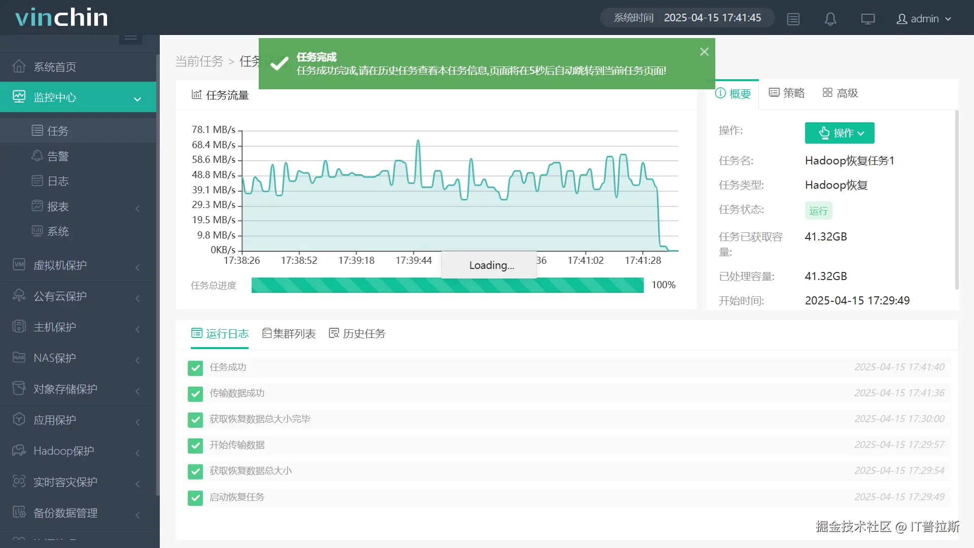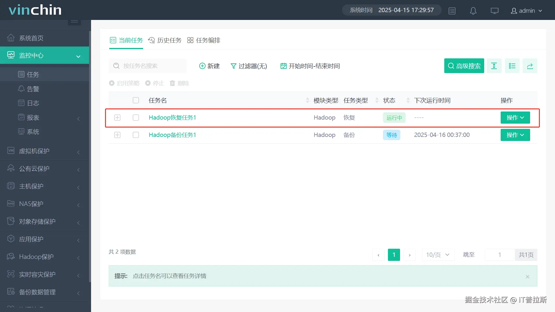 确认任务名称及任务参数,准确无误后点击提交,备份任务便创建完成了,后续备份系统将自动定时备份Hadoop上的数据,如图8、图9。