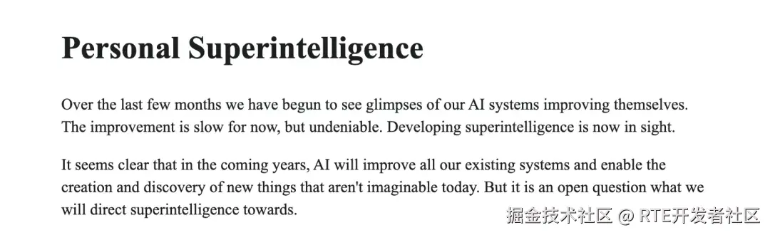 Meta CEO 扎克伯格发布一份名为《个人超级智能》(Personal Superintelligence)的信件,透露了 Meta 将目标定在了打造超级智能,同时也在文中暗示,Meta 或会走向闭源行列。