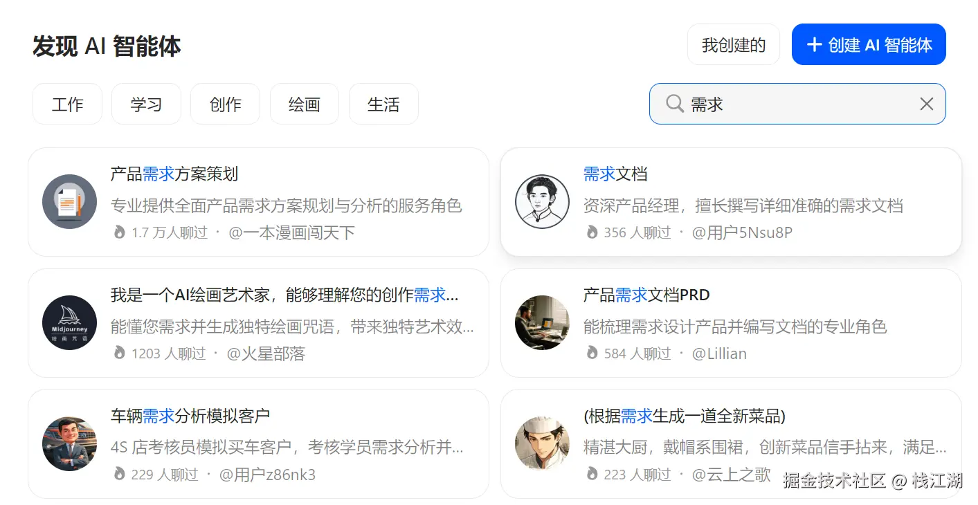 目前很多AI都提供了针对需求分析和需求调研的AI智能体,在洞悉需求与生成需求方面有着不小的助力。