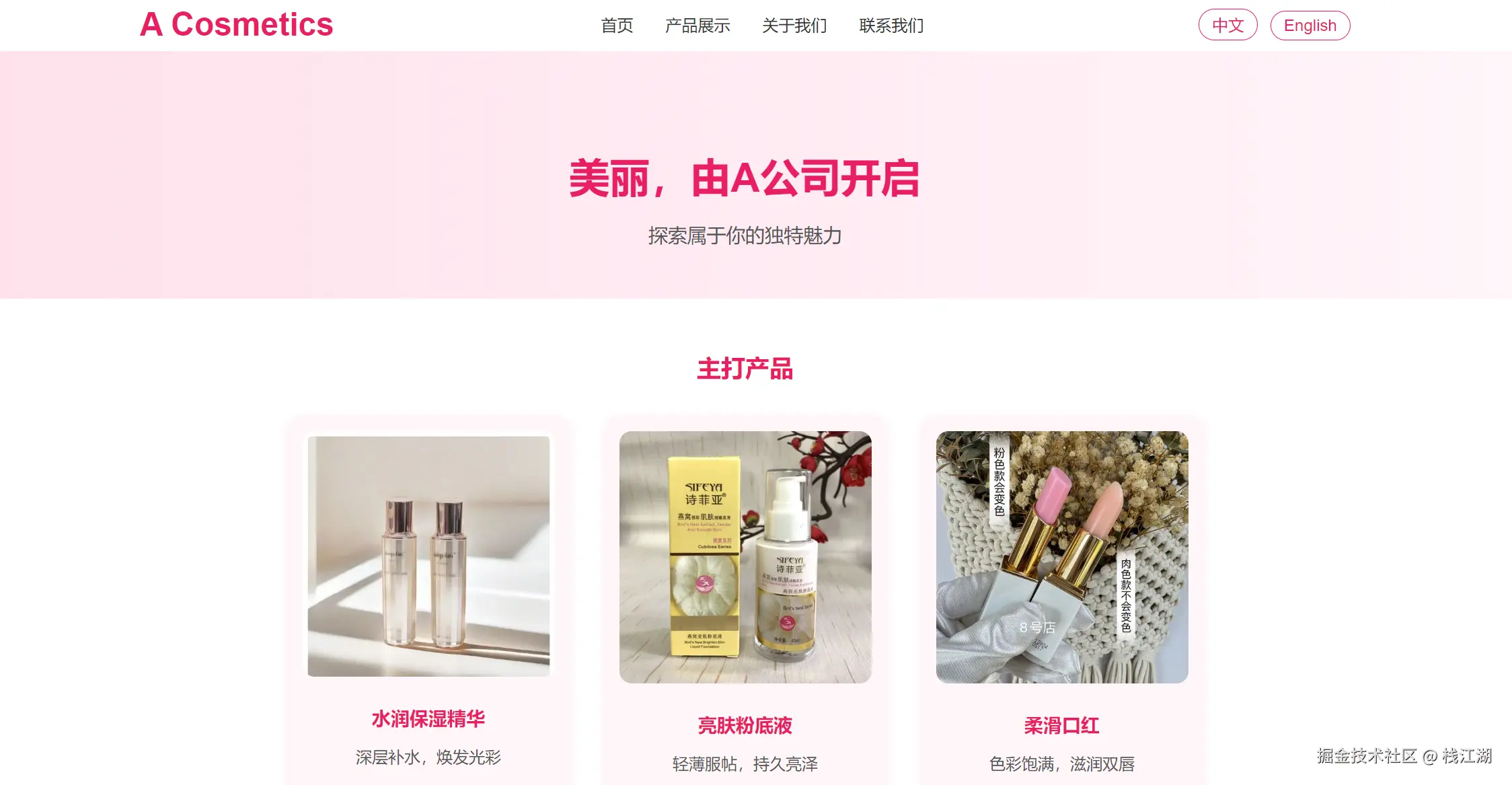 A公司是销售化妆品的公司,请开发一个静态的官网用于产品的宣传。
