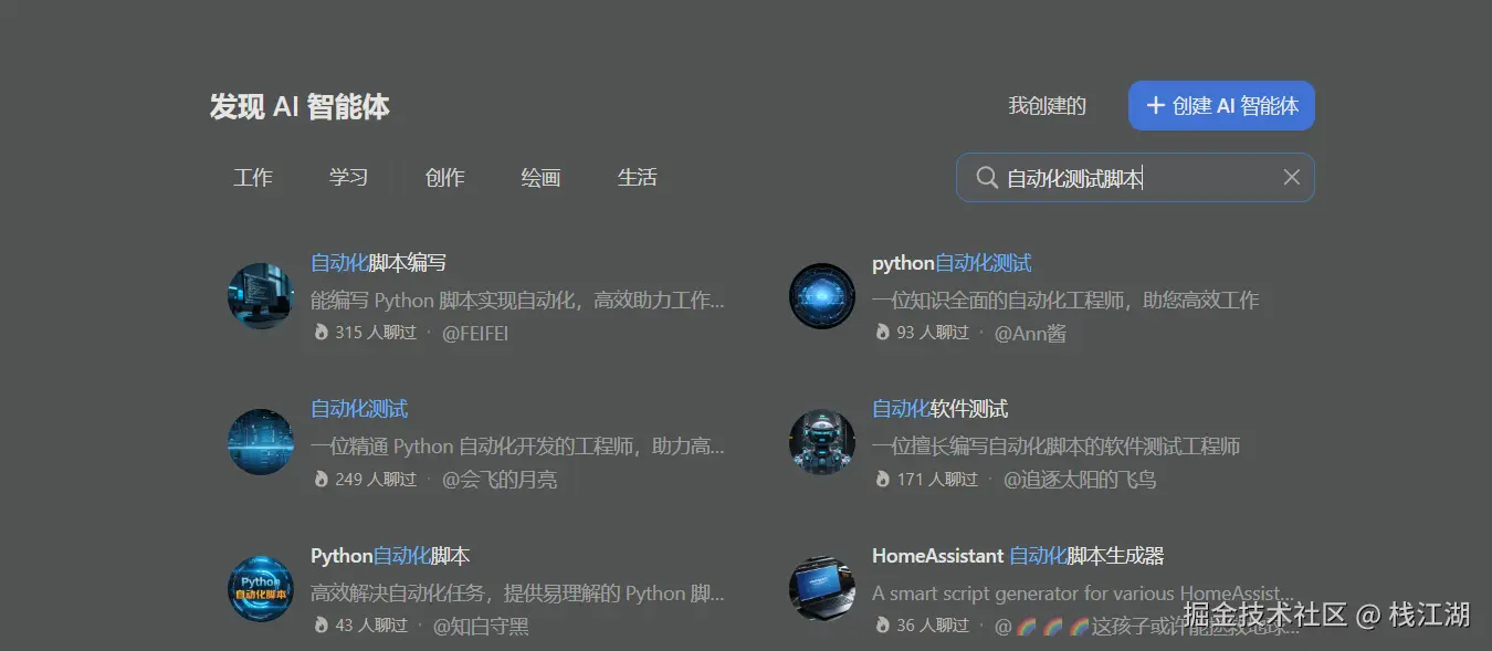 传统测试方式自动化测试的门槛还是很高的,有了AI之后,就直接找个AI就可以写了。当然还有大量的智能体就可以协助我们完成自动化测试脚本。