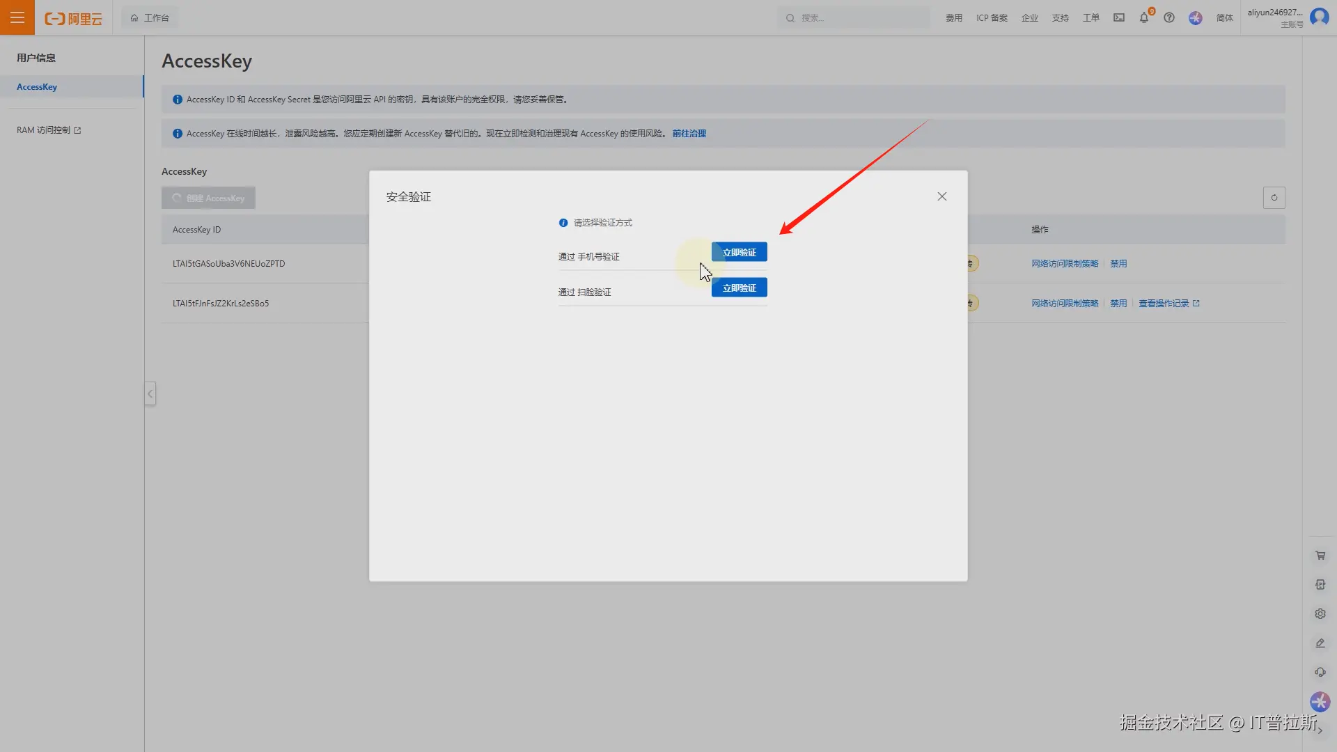点击创建AccessKey,并确认风险,如图3。