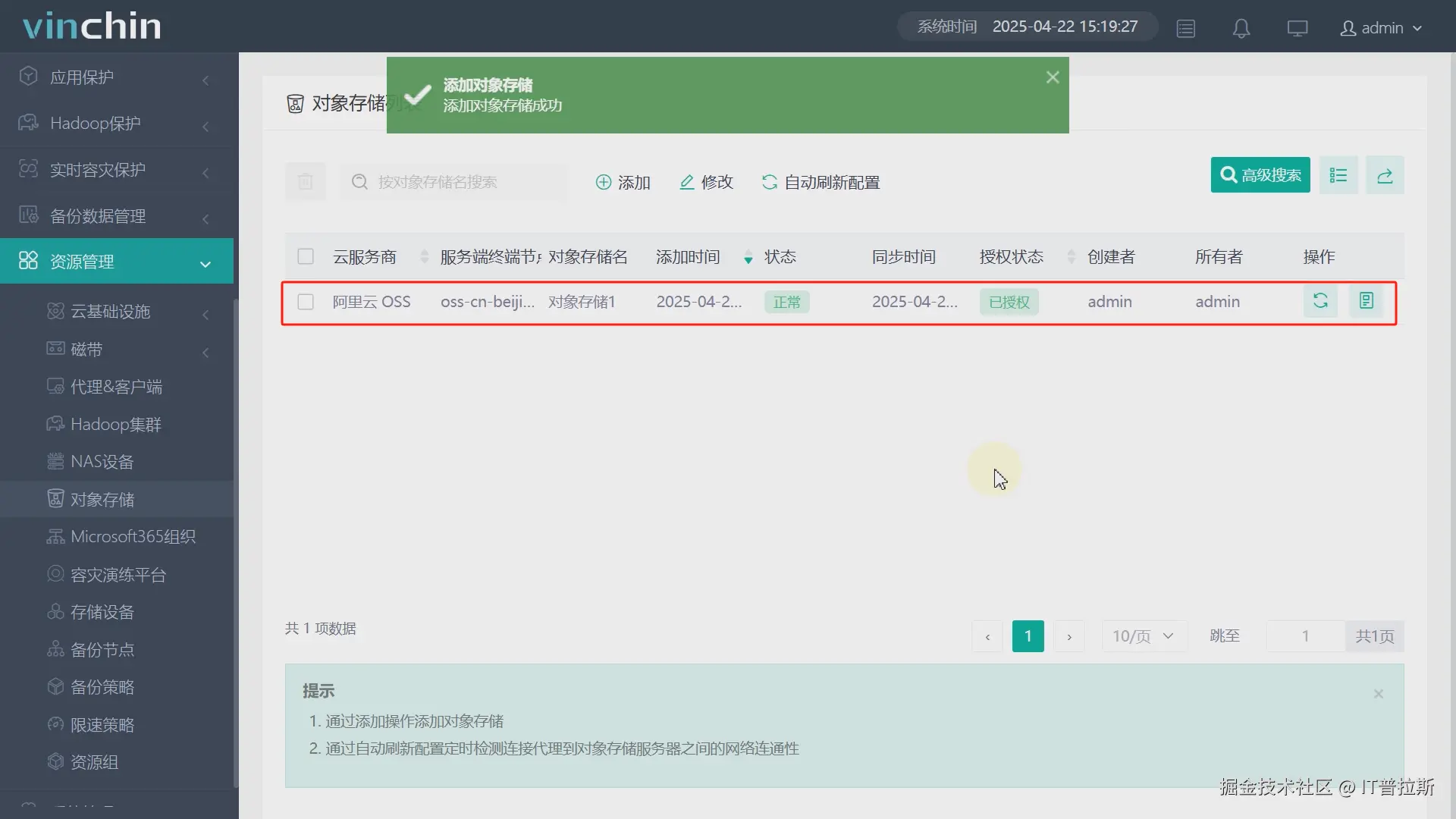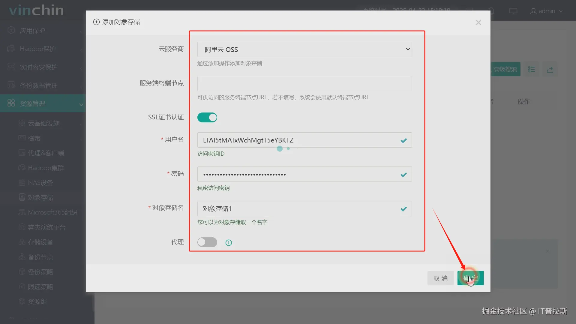 2、备份系统添加阿里云对象存储