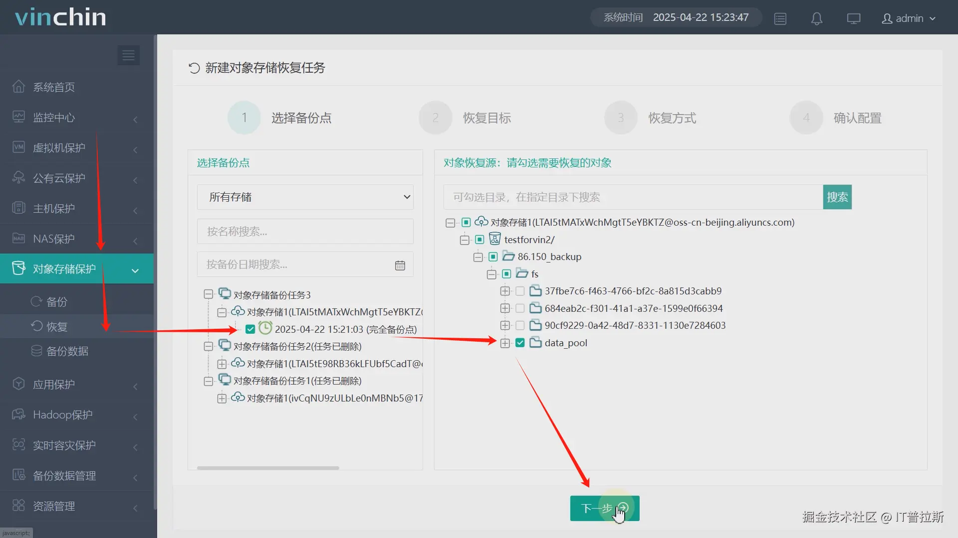 4、创建并执行阿里云对象存储恢复任务