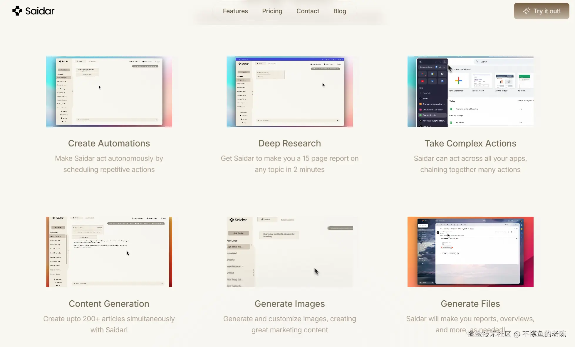 Saidar是一款AI工具,可以连接25+软件(如Gmail、Calendar、Docs)并智能自动化管理任务,帮助用户高效安排会议和处理其他行政事务。