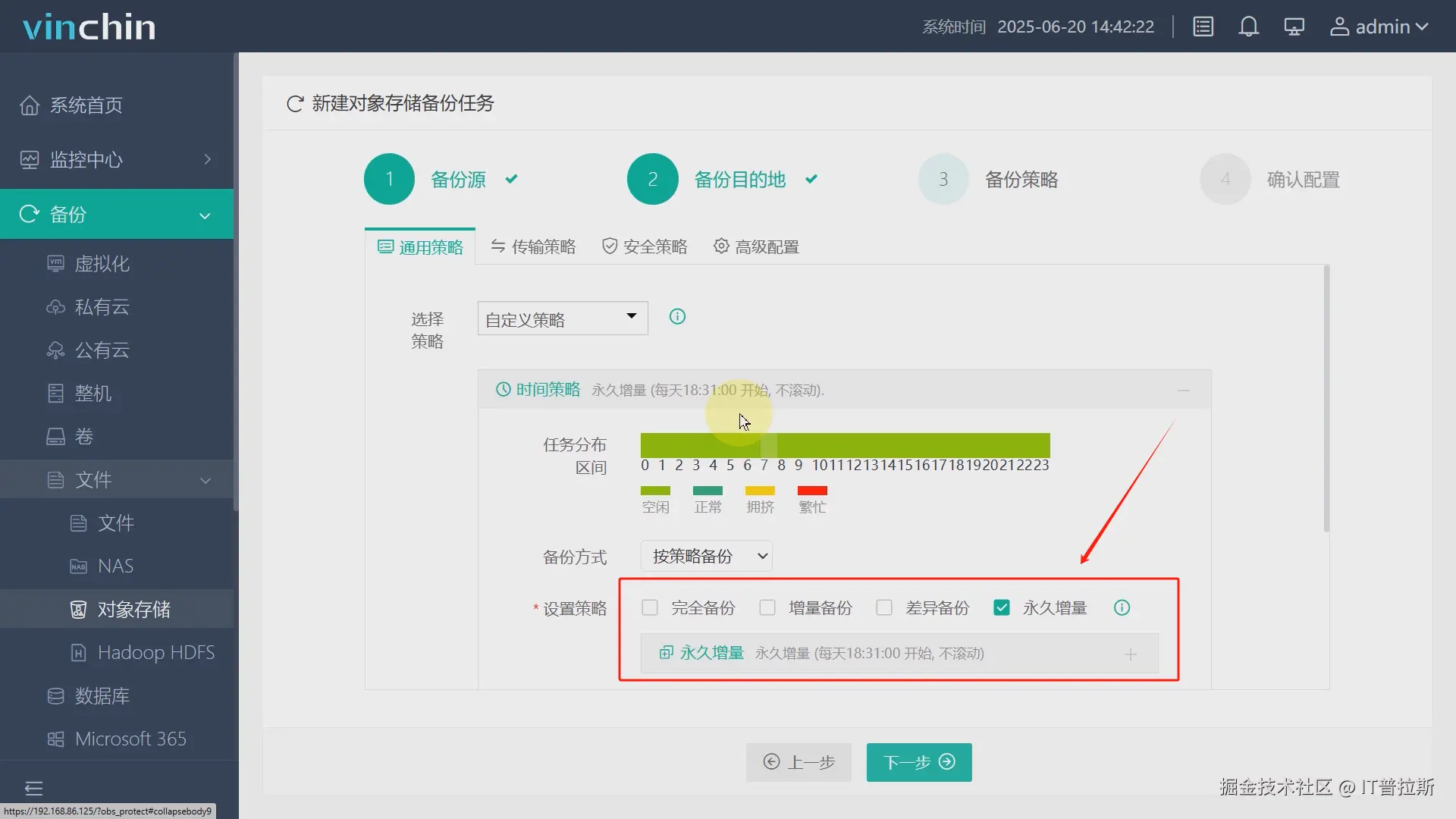 备份策略本次演示以每天一次永久增量备份为例,其余参与采用系统默认配置,如图7