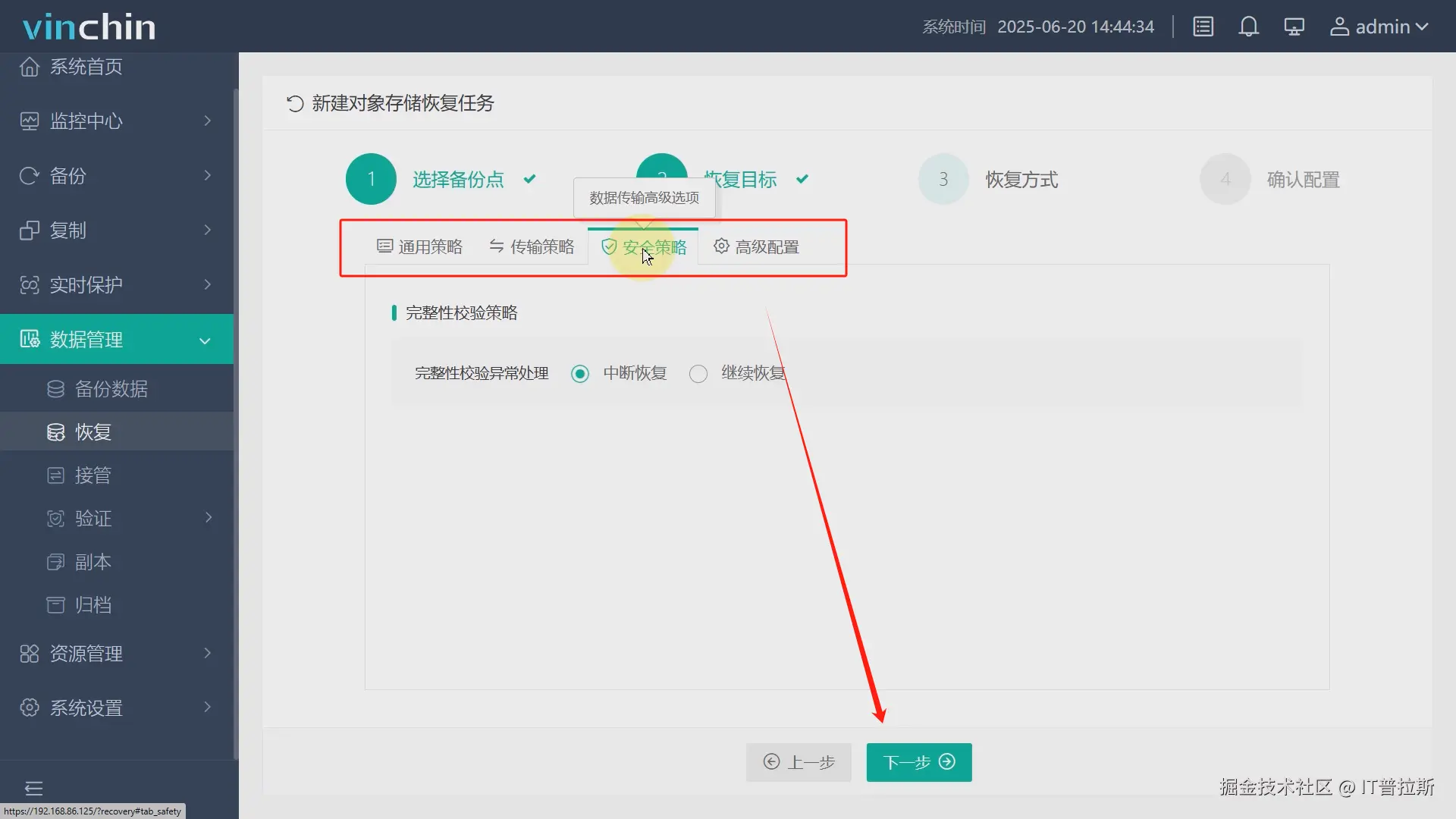 配置恢复任务名称、检查参数,无问题后点击提交,恢复任务创建完成,恢复任务将立即执行,如图13。