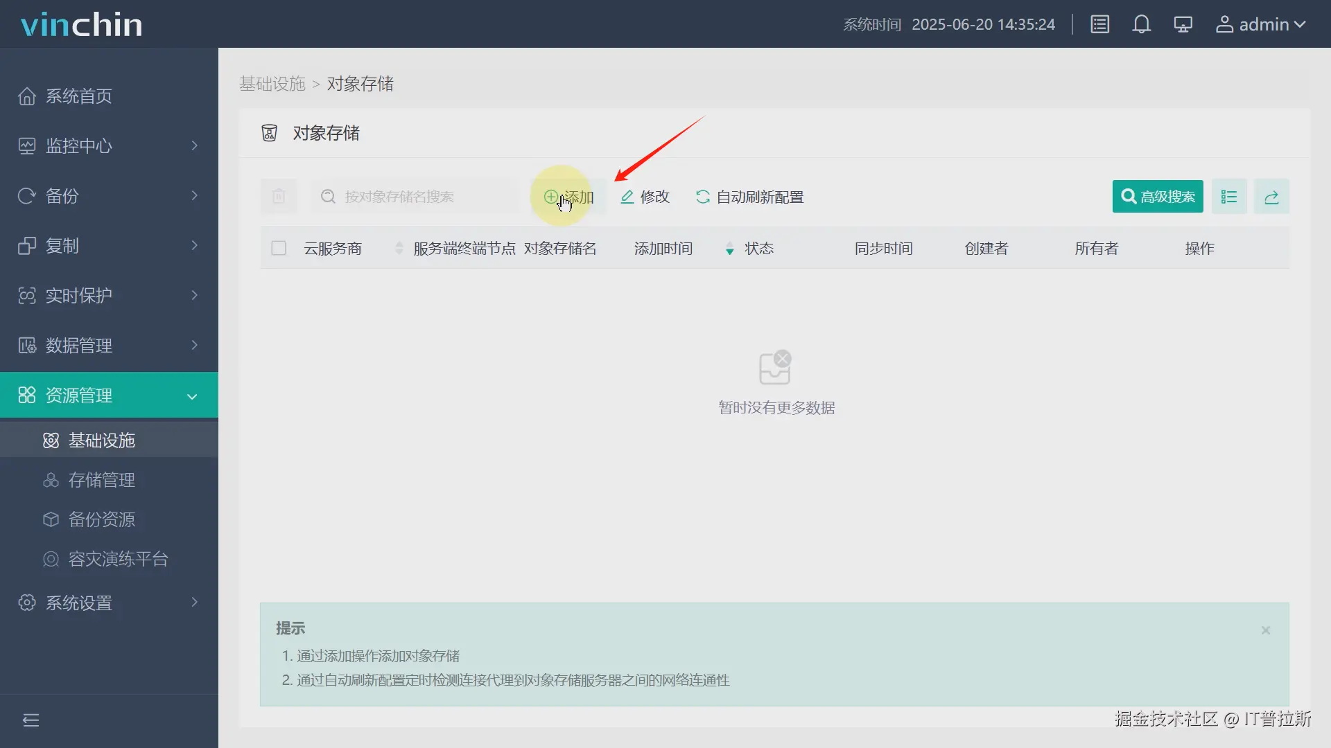 依次点击资源管理、基础设施、对象存储,如图1。