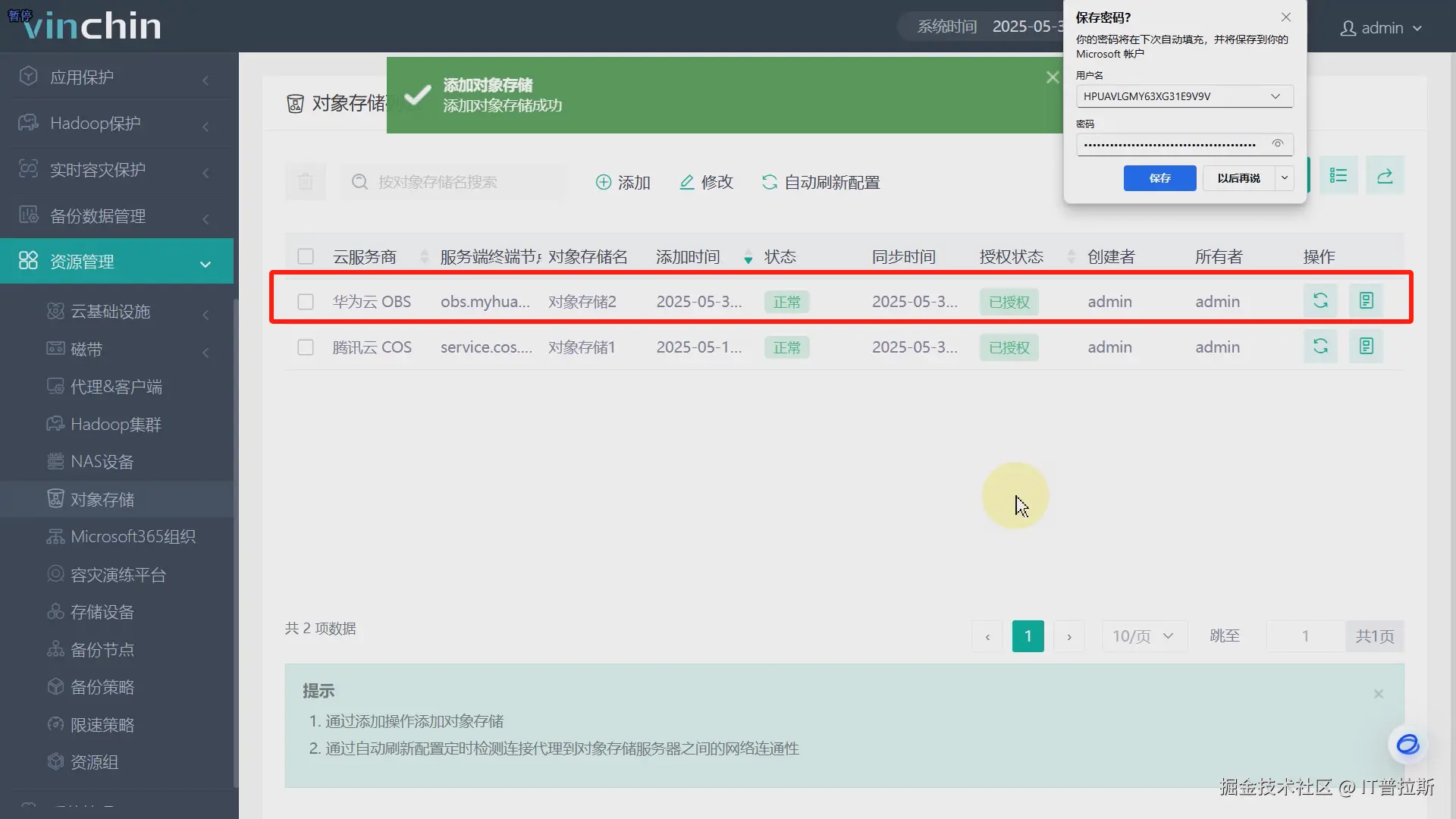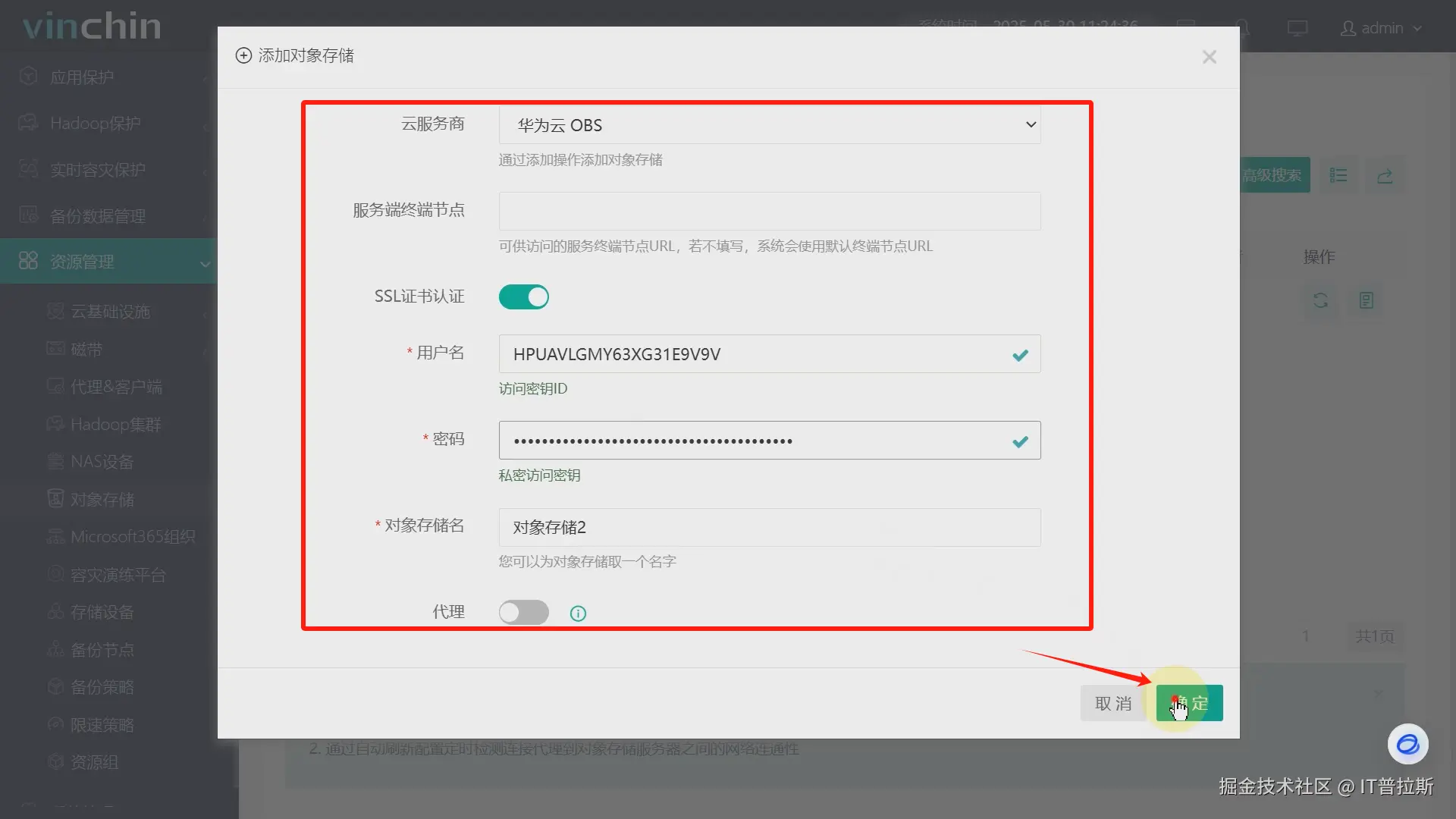 填写对应信息,点击确定,华为云对象存储则添加完成,如图6、图7。