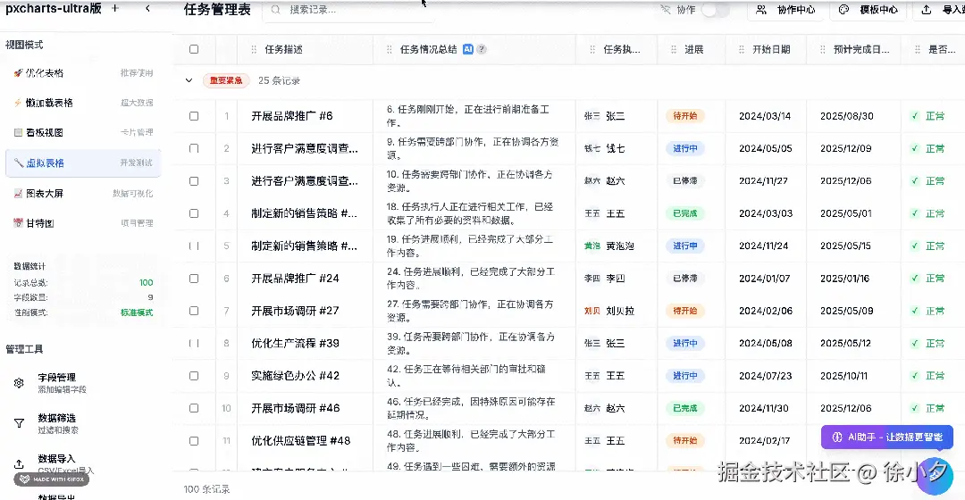 上周和大家分享了我研发的 pxcharts 多维表格的 Ultra 版本。