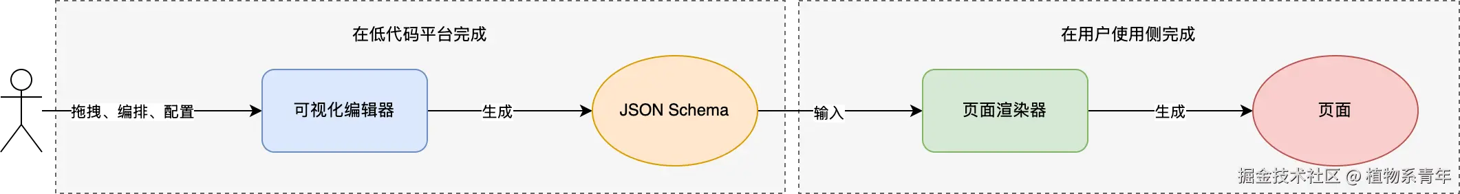 ⚠️ 低代码平台的另一种产物形态是出码,即 JSON Schema 转化为可二次开发的源代码,但二次开发之后是不可逆的,本文暂不讨论该场景。
