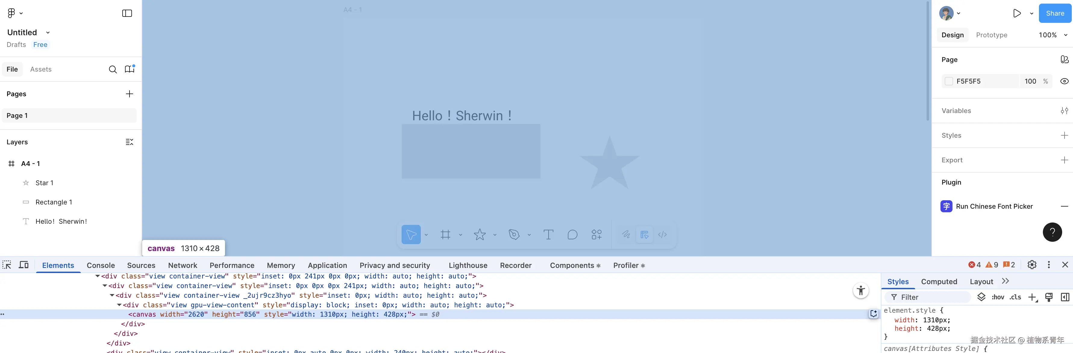 还有一种绝对定位自由画布,一般基于 Canvas 实现,这是一种完全自由的布局,允许使用者将组件在坐标系中任意拖拽、缩放、旋转,配合辅助线、吸附、自动分布等智能提示,一般应用于设计工具或者高度自定义的页面,例如 Figma 的画布就是一个 Canvas 元素。