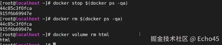 | docker volume prune | 清除数据卷 | docker volume prune |