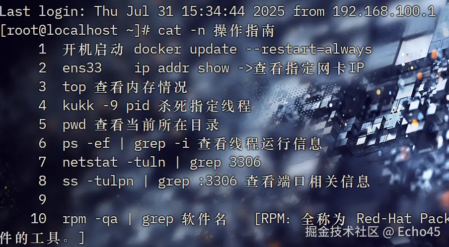 | 开放指定端口 | firewall-cmd --zone=public --add-port=8080/tcp --permanent | 需要重新加载生效 |