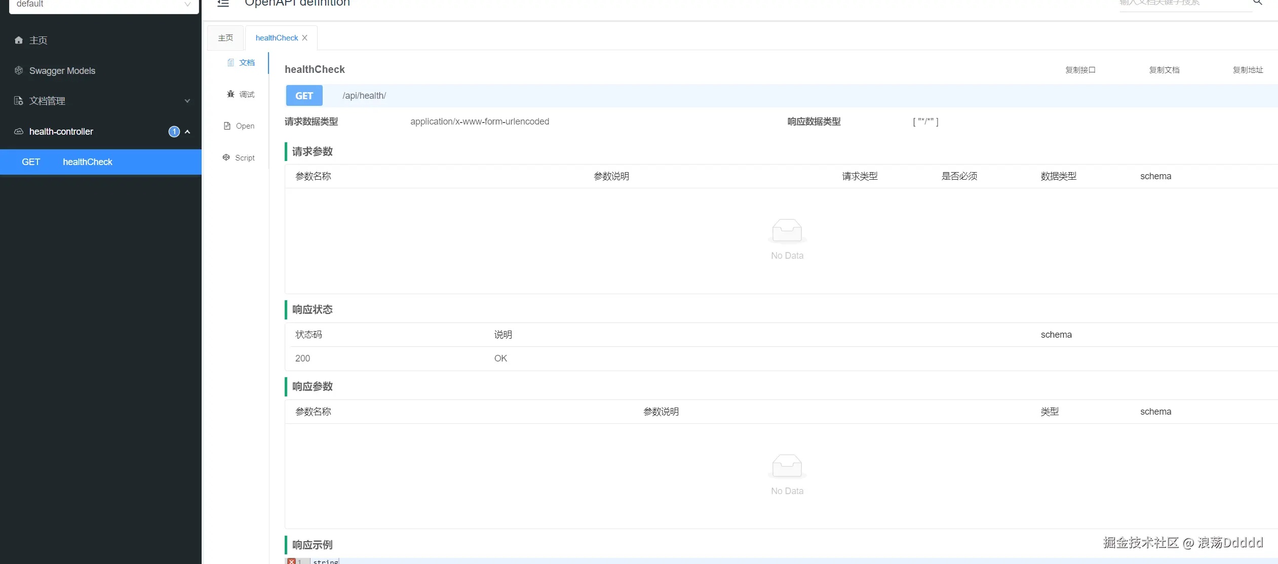 * 健康检查接口