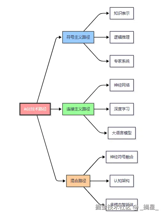通向AGI的技术路径并非单一,而是多条路径的融合。主要包括符号主义路径、连接主义路径、以及混合路径。图2 AGI技术路径分类图