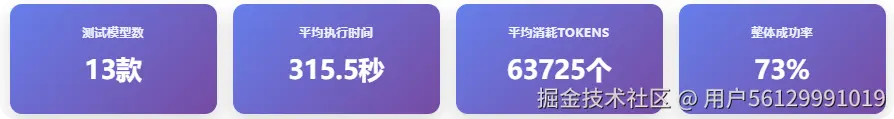 多维度评估:成功率、执行时间、Tokens消耗