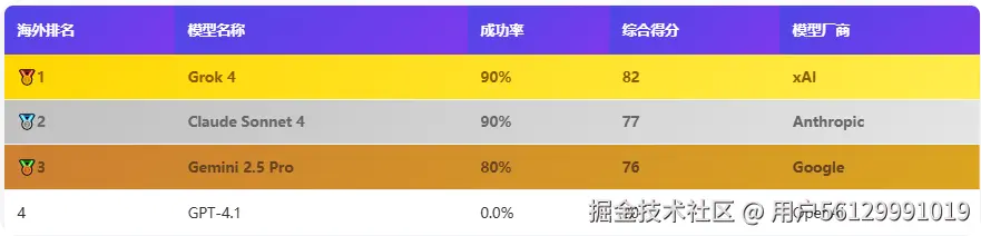 Grok 4以90%成功率领跑海外阵营,超越Claude