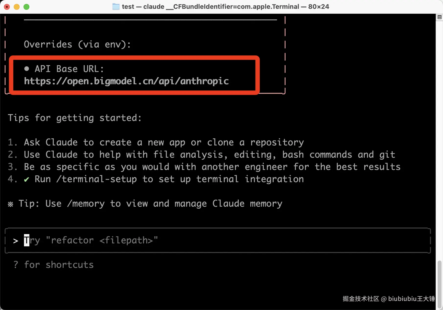 当终端最终出现以下画面,就恭喜你!Claude Code已经成功接入智谱AI最新的GLM-4.5模型了!