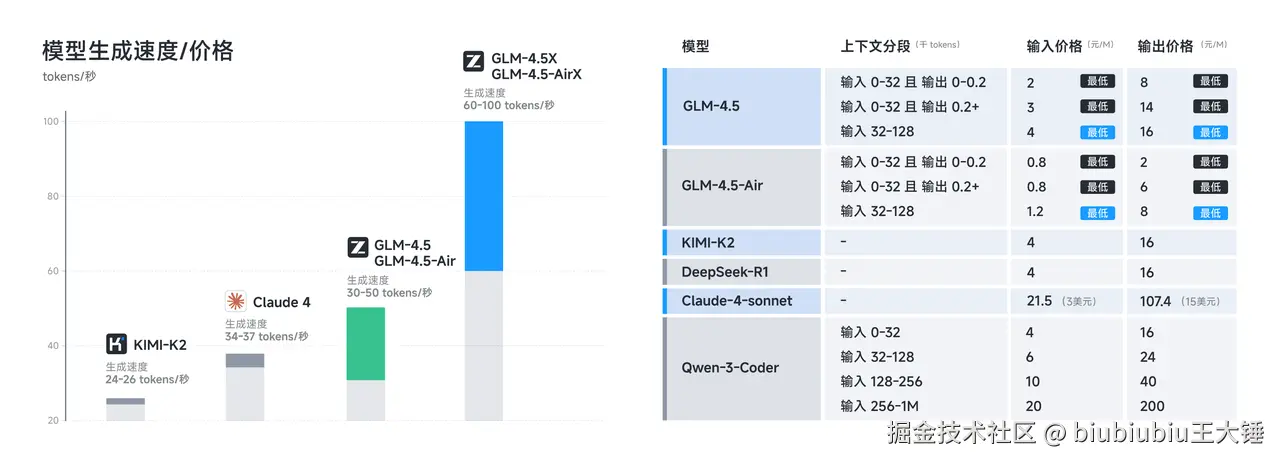 更令人惊喜的是,GLM-4.5不仅性能强劲,还拥有低成本、高速度的优势,简直是新一代的“价格屠夫”!
