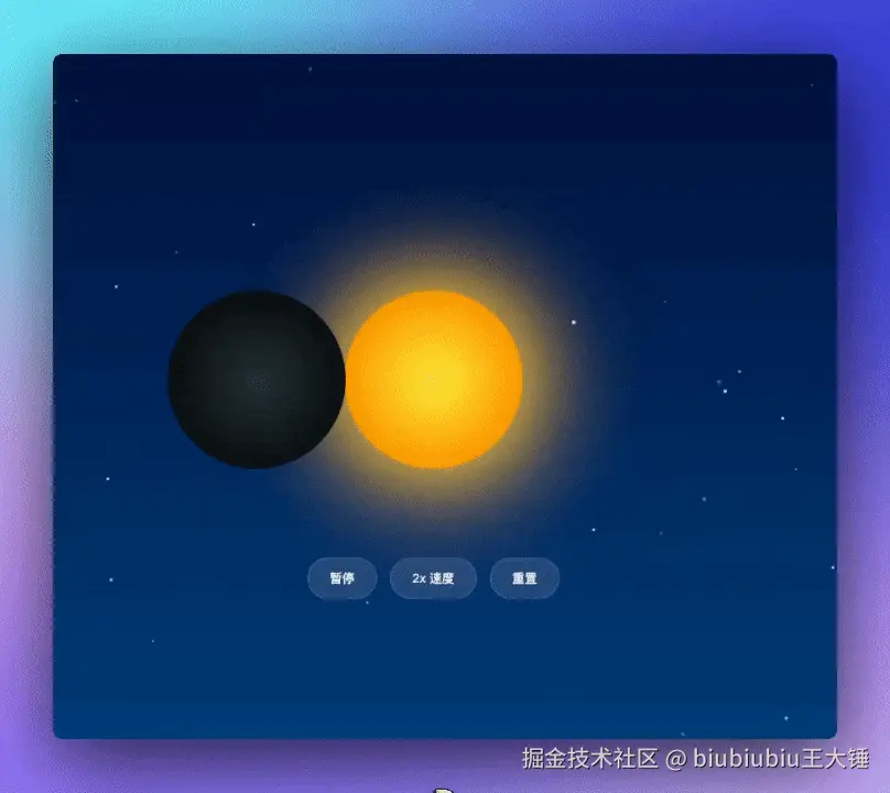 - 提示词:帮我生成日蚀过程的动态特效,尽量采用苹果手机的风格