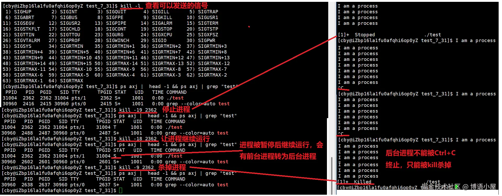 前台进程可以被Ctrl+C终止,后台进程不可以
