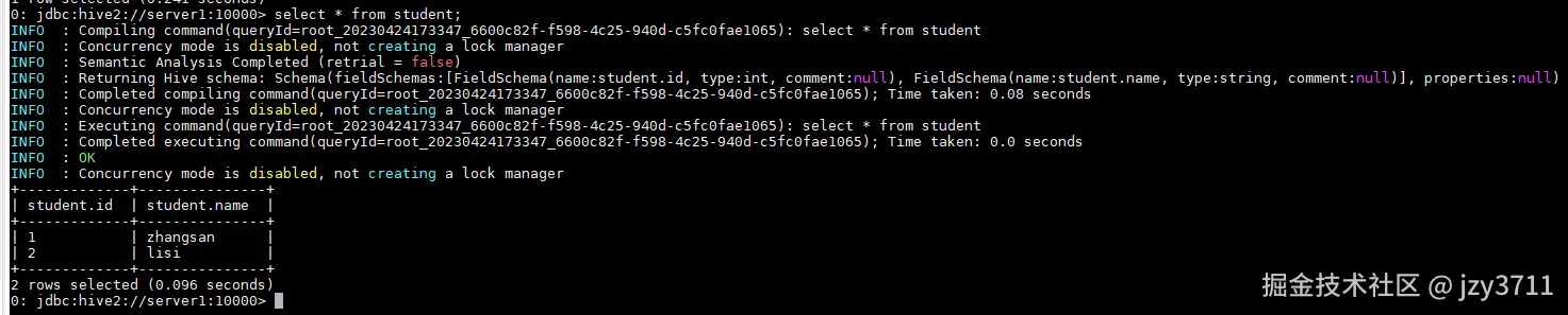 在server1使用beeline连接。
