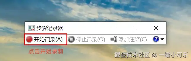 步骤2:启动步骤记录器后,界面有简洁控制栏。点击 “开始记录” ,每一步操作都会被自动捕捉,包括窗口切换、按钮点击等。