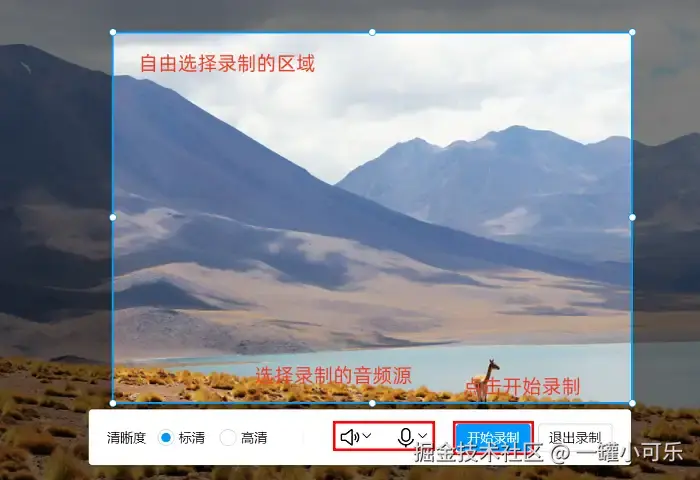 步骤2:这时会出现录制控制框,点击录制按钮旁边的小箭头,可以选择录制整个屏幕、某个自定义区域,还能设置是否录制麦克风声音等。设置好后,点击录制按钮就开始录屏了。